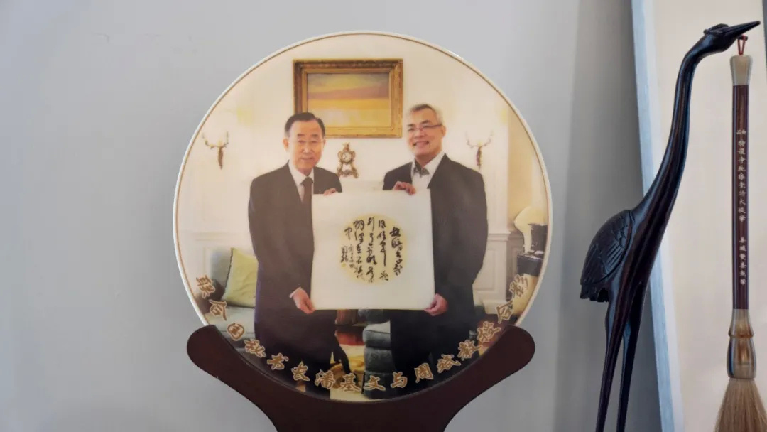 故事还要从2011年开始说起,那时,经中国驻联合国代表团领导的推荐,周斌教授被推荐到当时的联合国秘书长潘基文的官邸,专门教授潘基文先生及他的夫人学习书法。