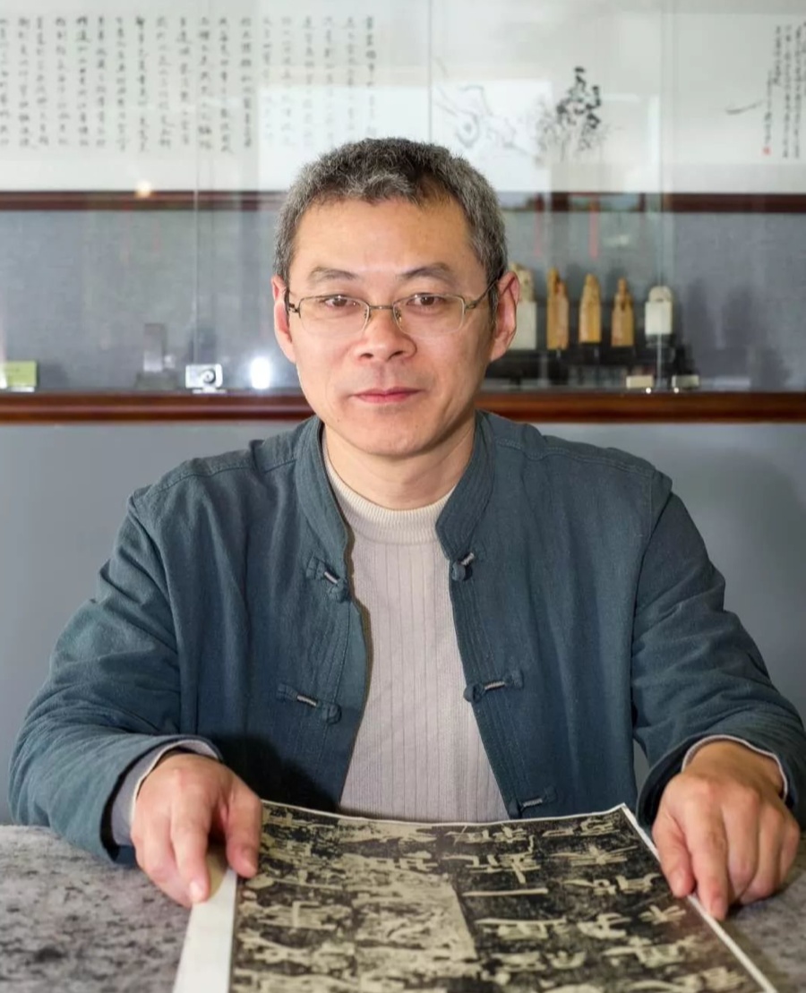 第一次见到盛兰军老师时,他正凝神刻着印章,与想象的相同,他身上有一种文人雅士的闲适、恬淡和从容。而他的作品也如其人一般,浩然大气,古意幽然。