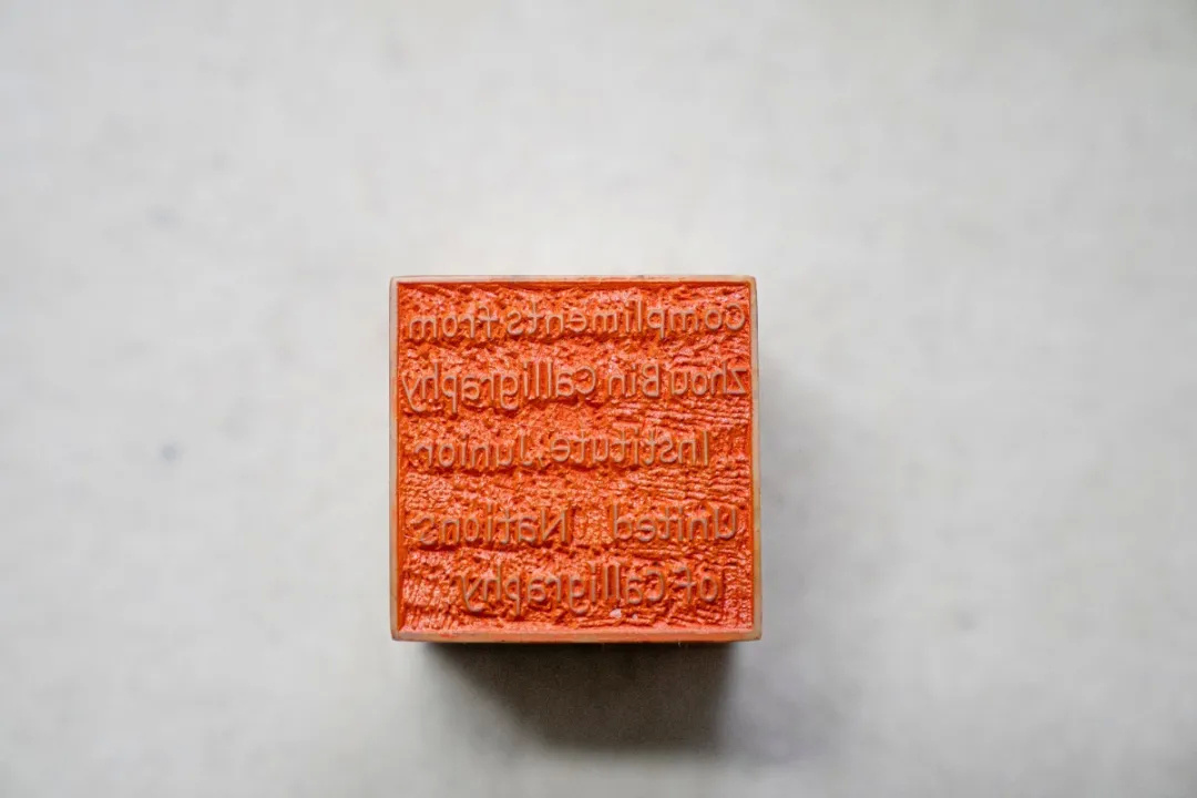 “我知道他花了很大的精力,当时我的要求也蛮苛刻的,我说‘书法小联合国’首先是中国的一个符号,你要刻两个,第一个按照篆刻的形式去做,第二个我建议他用英文的方式刻“书法小联合国”的章。