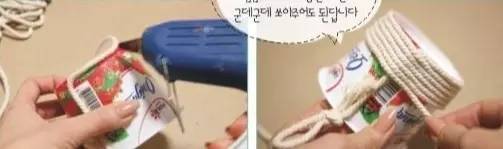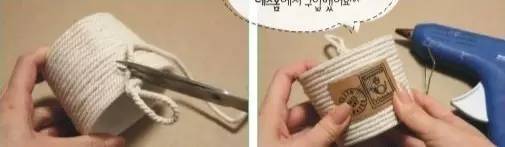 将麻线一圈圈的绕在盒子上,要包裹紧密,用剪刀剪掉多出的麻线,病用胶枪固定。