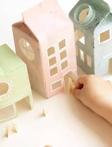 与孩子一起制作这样的小房子,既能变废为宝,又能提升孩子们的动手能力,和想象力。