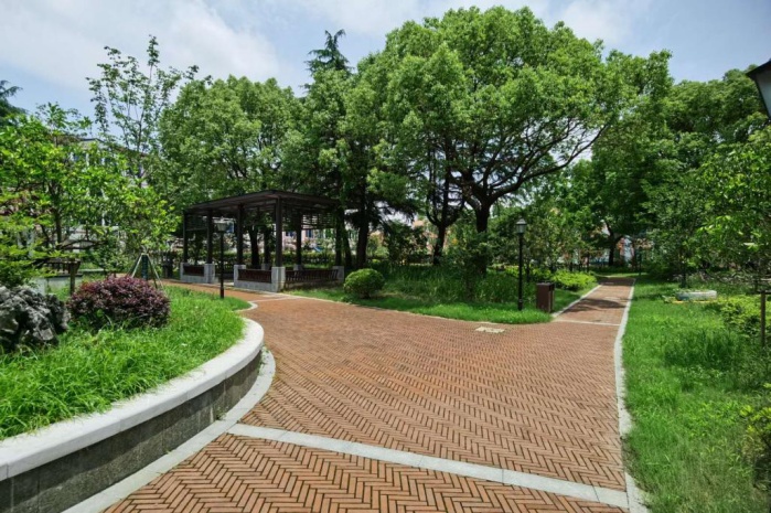 江玮公园是浦江镇唯一的镇级公园,整体以中心活动广场辐射,东侧为与市政道路衔接的休闲通道为主,北侧为小型休闲广场,西侧主要为运动场所,有健身广场、网球场、门球场、足球场等供市民休闲娱乐。