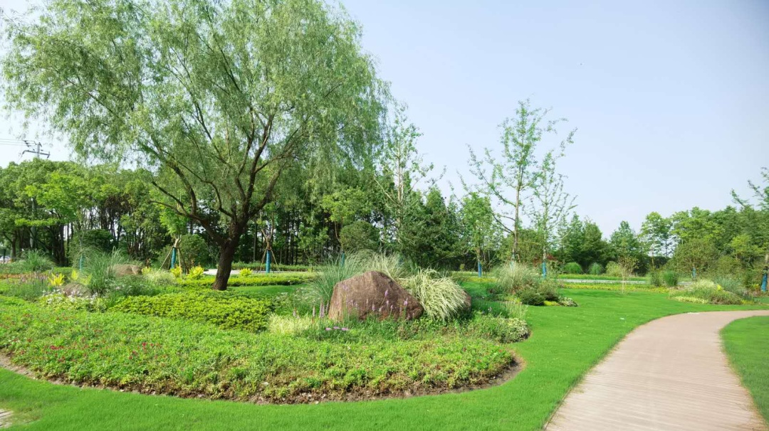 S32北侧绿道长度1.5公里,以“生态田园、乡愁记忆”为主题,致力于打造具有浦江特色的花海林荫、生态野趣,又与都市生活融为一体,营造自然和谐,可持续发展的生态绿色景观。