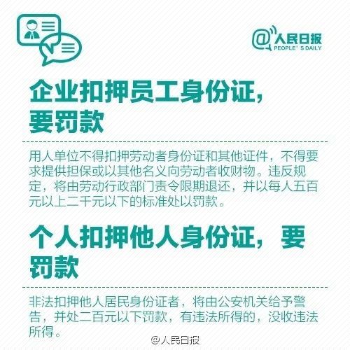身份证号码那么多位,每一位代表什么?为什么有人身份证的末尾是X?身份证复印件怎么签注才能保证安全?企业扣押员工身份证,要罚款…