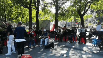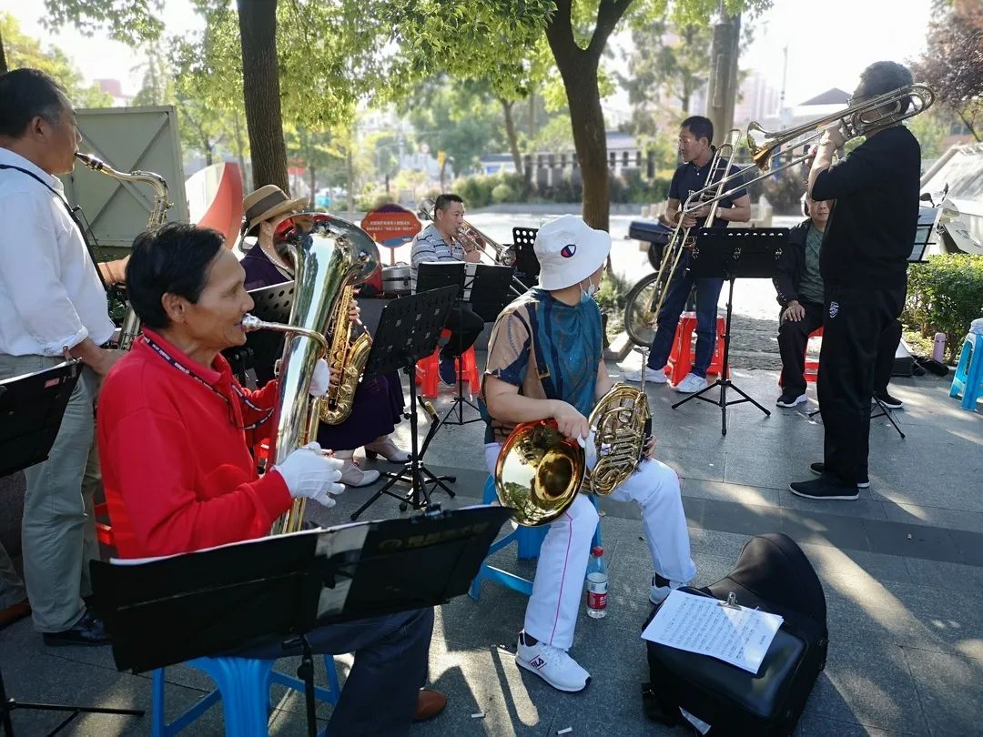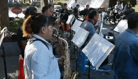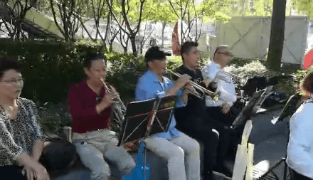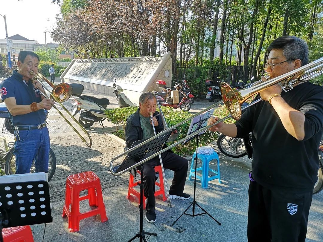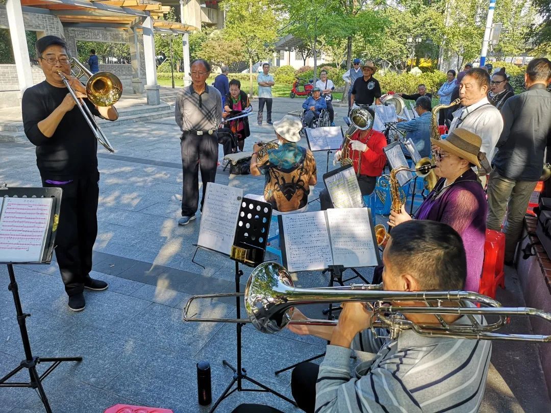 这支乐队名为上海和之声铜管乐队,成立于今年的7月27日,由的士管乐队与高境殷朋管乐队联合组成。34名演奏员是清一色的中老年人,大部分住在高境,有的住在吴淞,他们因为对音乐的共同爱好而相聚在一起,使彼此的生活有了交集。