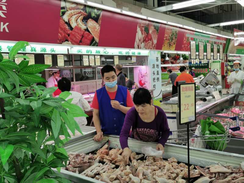 在柜台边,时而聚集起购买的人群。虽然冻品不及活杀的新鲜,但是现代化的冷冻技术,基本能保持鸡肉的原味,做菜几乎不受影响。