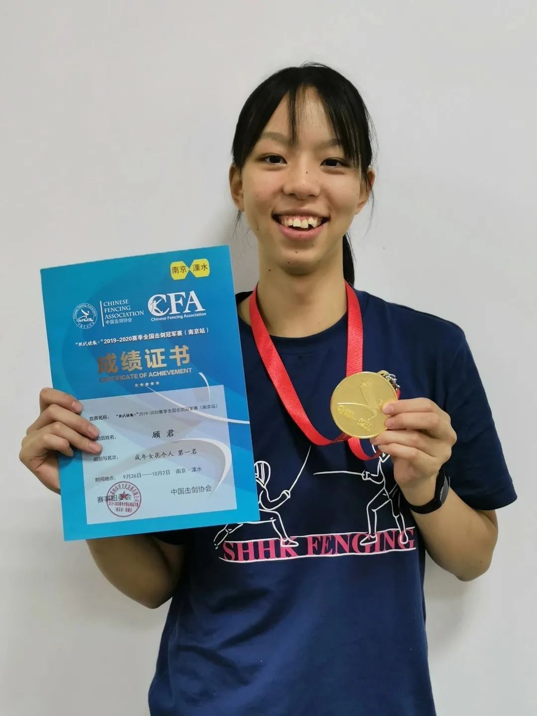 • 2020年在刚结束的全国击剑冠军赛(南京站)中获得女子花剑个人冠军,这也是嘉定击剑队在全国成年组别比赛中获得的最好成绩。
