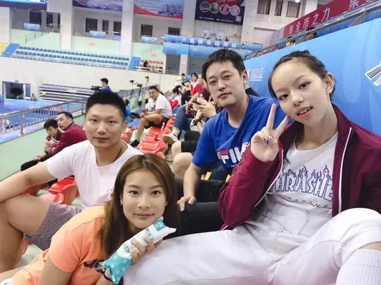 顾君(左)在比赛中接受叶冲教练指导