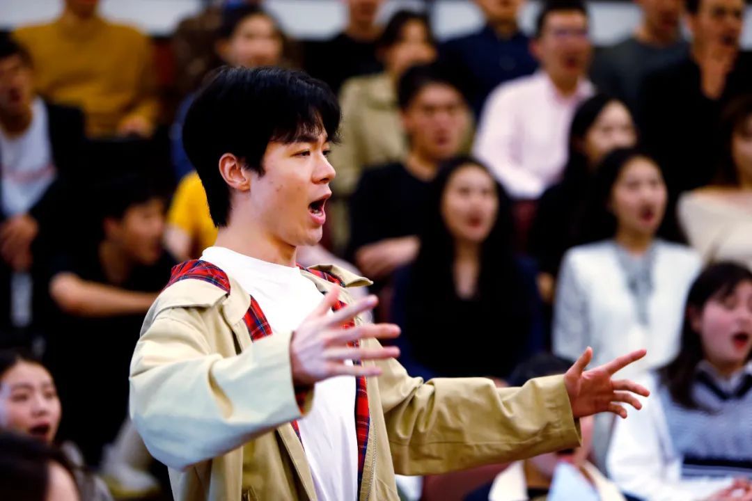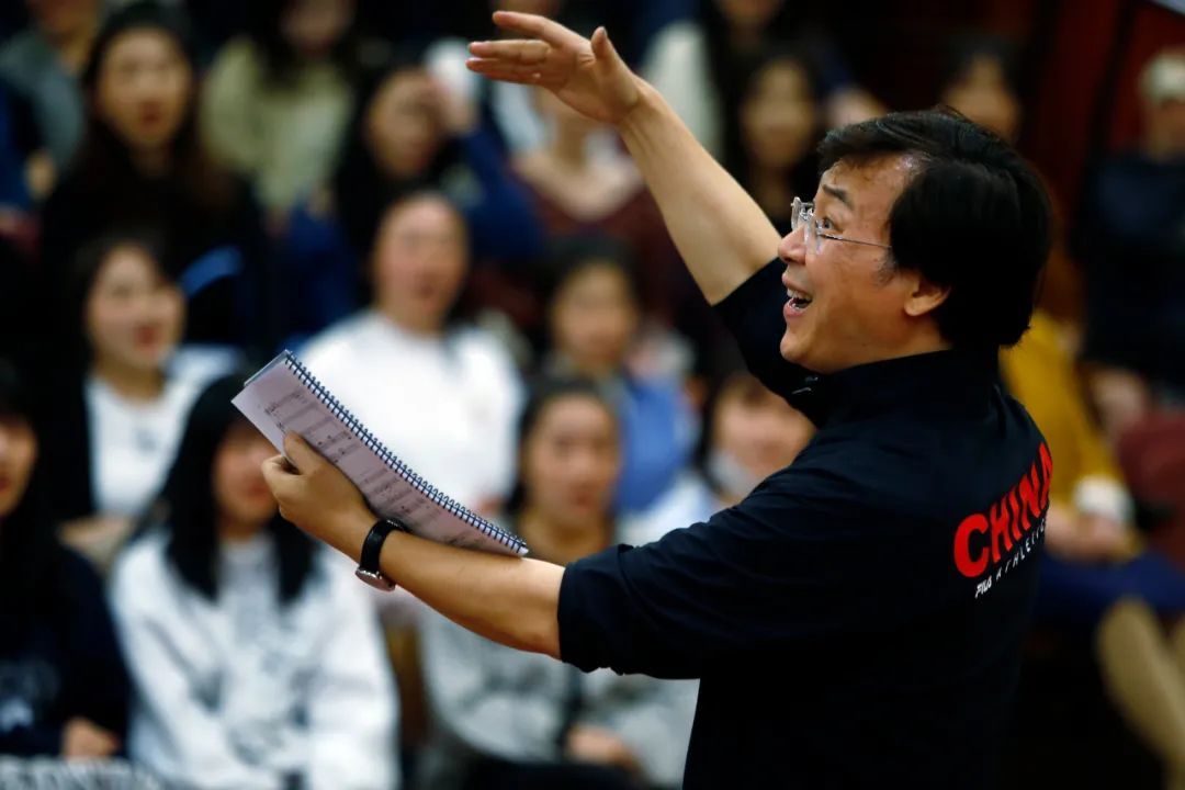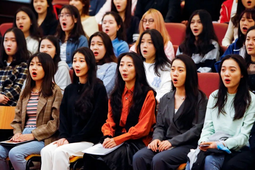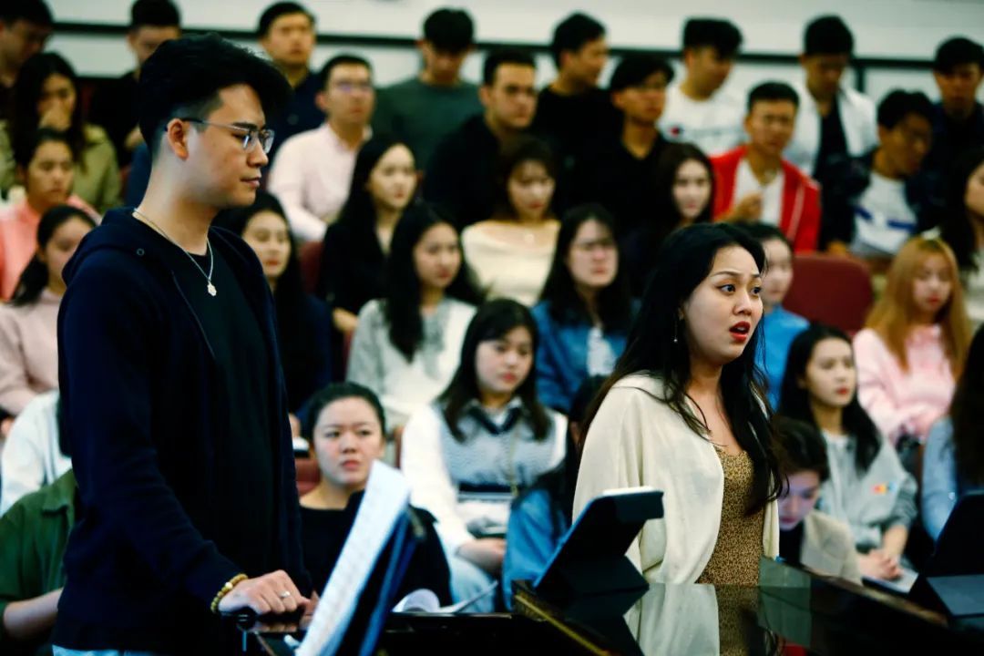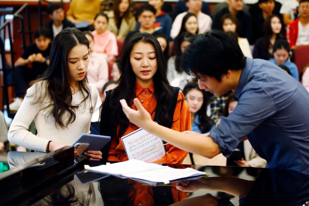“开心啊,祝捷啊,中间部分唱的不能太死板,要有欢快乐观的情绪。大家注意,革命的乐观主义精神,浪漫主义精神,战友间互相爱护的情谊始终贯穿……我们一起再试试看,一二三,走!”廖昌永为同学们讲解并示范着。