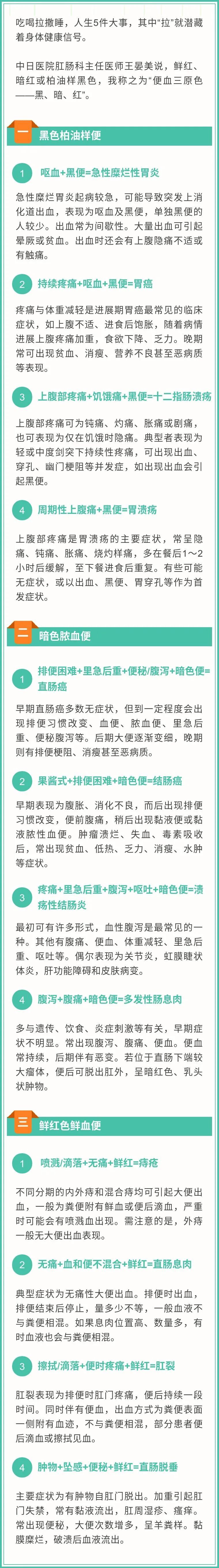 如厕学会看这一眼,了解自己健康状况!出现以上这些情况,应当及时就医,以免延误病情。大便出血常做的检查有——肛门指诊、肛门镜、便潜血,便潜血阳性者,再做结肠镜检查,排除大肠良性和恶性肿瘤。 信息来源:健康时报 编辑:邱丽娜 杨浦区融媒体中心