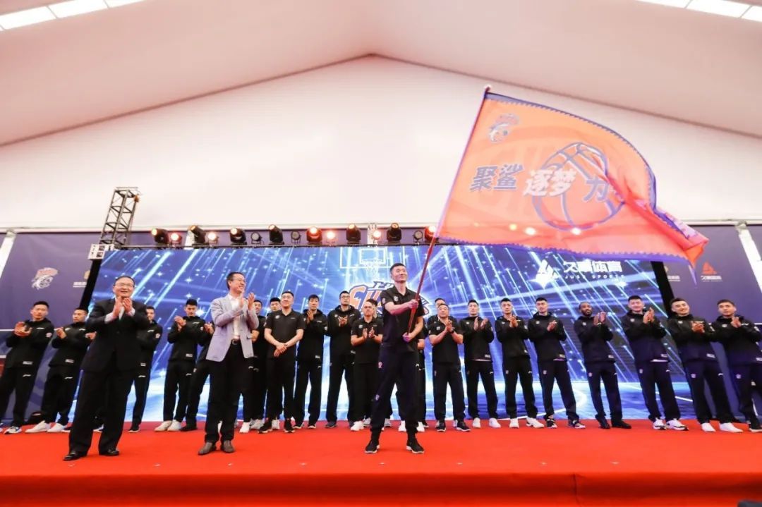 市篮球协会会长龚德庆向俱乐部授旗