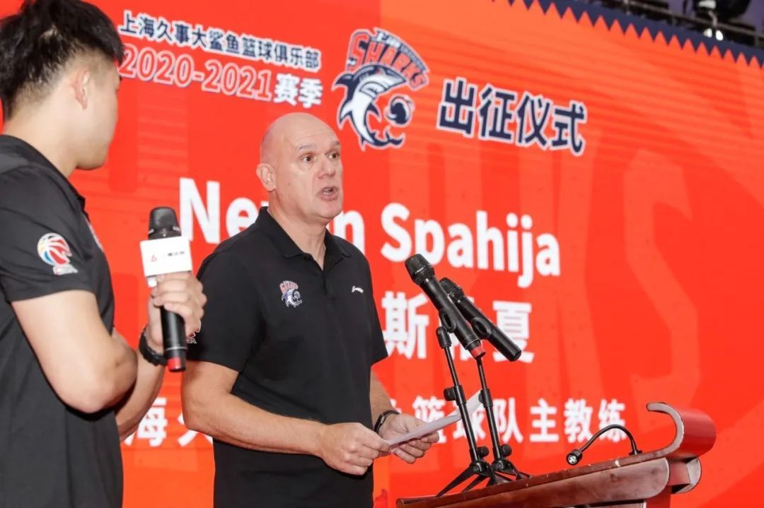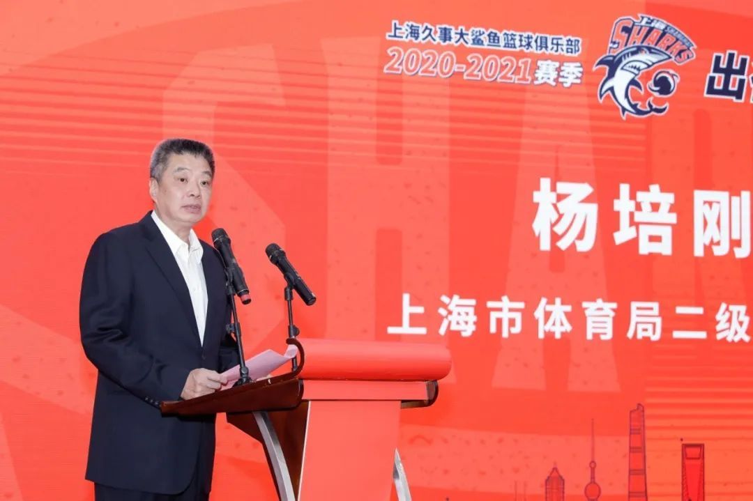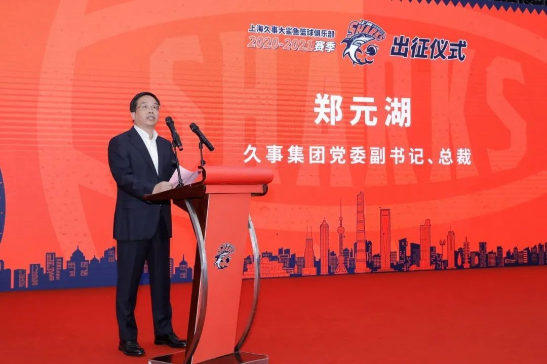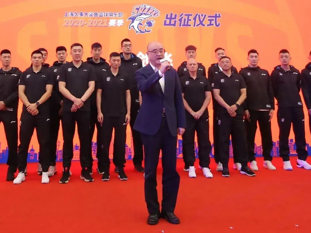 今天上午,上海久事大鲨鱼篮球俱乐部在三甲港训练基地举行了“聚鲨逐梦·力争上游”CBA联赛2020-21赛季出征仪式。