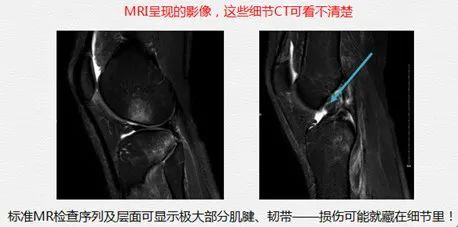 常常被误会辐射大的磁共振,其实根本就没有辐射,是三种检查方法中最安全、最环保的技术。膝关节磁共振可以全面评估膝关节的各个组成部分,能够观察到半月板、韧带、肌腱、关节软骨等细节中的损伤,而其他检查方法可看不清楚。