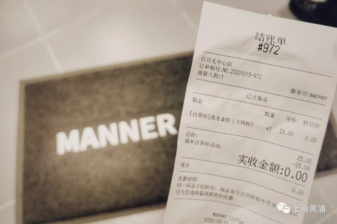 “大概四点四十到的。”在打浦桥附近上班的胡先生作为MannerCoffee打浦桥店最后一位喝到免费咖啡的顾客提着自带咖啡杯说开心的时候:“这家咖啡每天都来,昨天看到店庆,活动截止到五点,就赶紧拿着杯子来凑合热闹。”