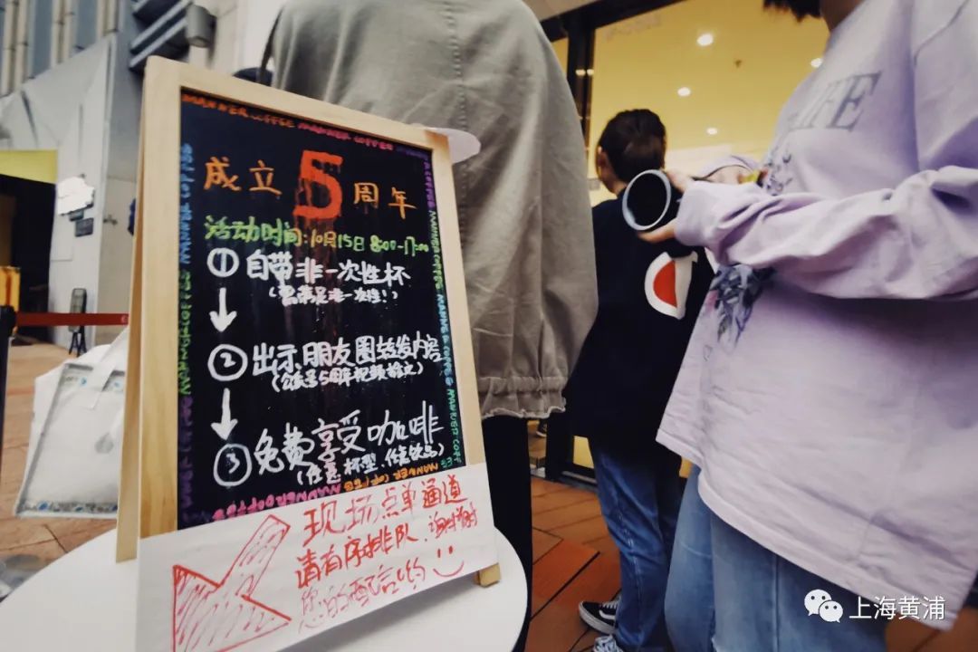 现场排队的顾客有附近上班的白领、有刚接完娃放学带着娃就来的家长,也有恰巧去买菜路过的奶奶。问起排队时长,答案也很不一样,幸运的人只用了20分钟,有人用了一个小时,记者算了一下平均从点单到喝到咖啡,差不多在40分钟左右。当然,也有粗心的铁粉拿着自带杯迟到了半个小时,惊讶之余,铁粉连连说:“没事,一定还有6周年、10周年可以喝免费咖啡。”