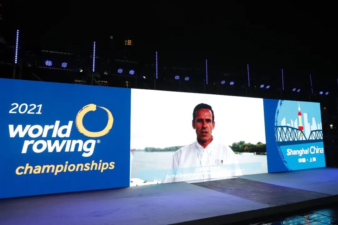 国际赛联主席让·克里斯托弗·罗兰在致辞中向上海市政府、中国赛艇协会、上海市体育局、东浩兰生集团,以及所有对2021年世锦赛筹办做出贡献的朋友致以最诚挚的感谢。他说,2020年对所有人来说都是极其艰难的,因为疫情,国际赛联工作团队无法来上海,欣慰的是上海世锦赛所有工作都在有条不紊地顺利进行,各方为此付出的努力是巨大的。他表示,一年之后,中国和世界各地的观众,将在现场或通过电视转播欣赏中国最优秀的赛艇选手与来自世界各国各地区最顶尖的运动员同场竞技,大家将共同期待这一无与伦比的盛会。