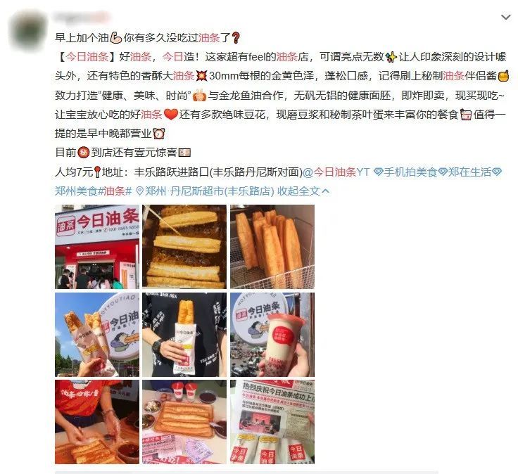 今日油条这是想把各个品牌都撩一遍吗?不过这招“借势建势”的招术,确实给“油条店”带来不小的流量和经济利润,小小的店面竟然成为了郑州美食网红打卡店,火了好几个月。