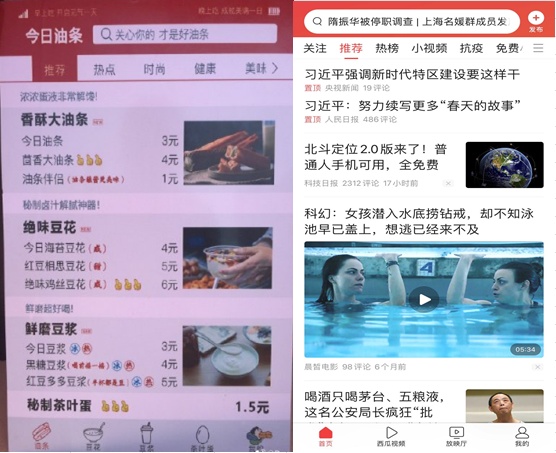 看着这熟悉的今日头条红白搭配的风格,不知道的还以为字节跳动跨界餐饮行业,从此可以一边吃着“今日油条”一边刷着“今日头条”,累了还可以刷刷隔壁的“抖音”。