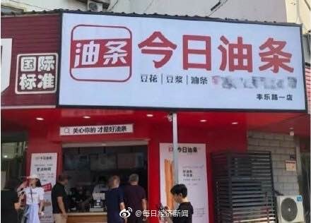 继碰瓷四大互联网巨头出现“阿京腾百”的商标之后,又来了家名叫“今日油条”的早餐店碰瓷今日头条...这家店铺近几个月来火爆网络,但由于该店铺装修、logo 与今日头条极度相似,然后今日头条母公司将该店铺背后公司告上了法庭。