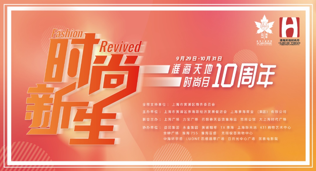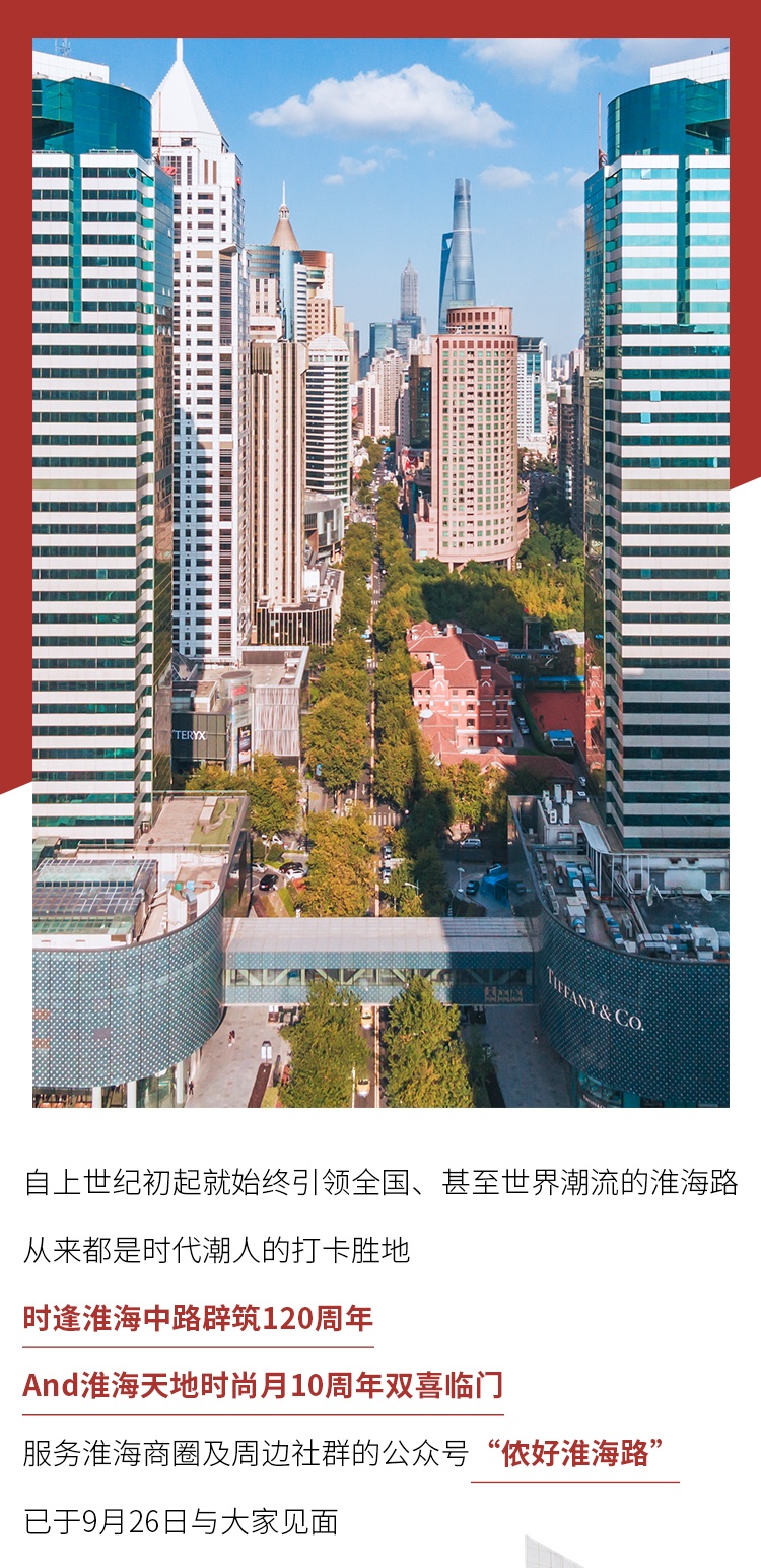 时逢淮海中路辟筑120周年和淮海天地时尚月10周年双庆,淮海商圈仍然将不断推出各类时尚文化艺术,场场精彩,不容错过喔!
