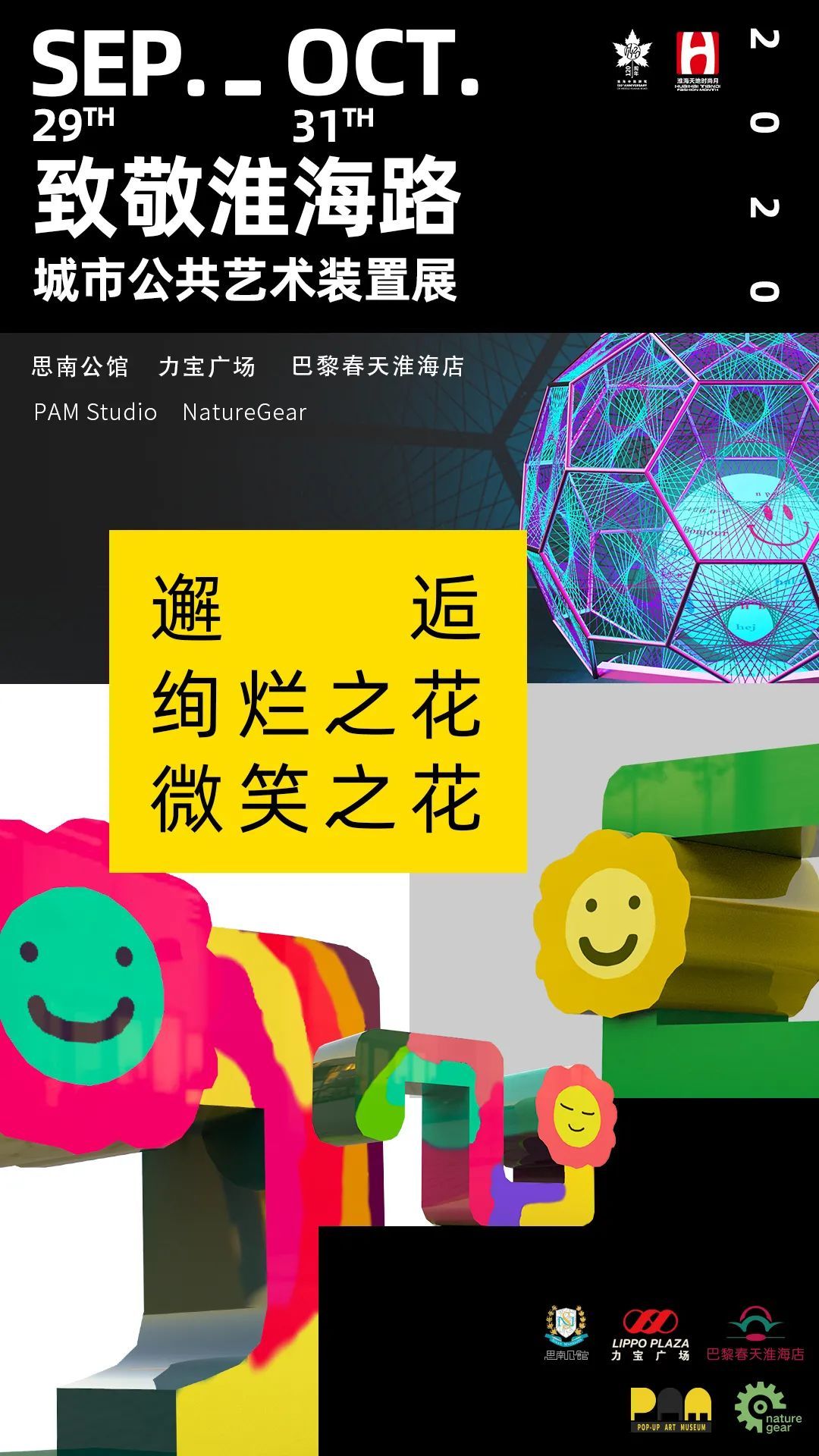 时尚月主办方还联合PAM Studio和NaturGear携手知名设计师王杨和青年艺术家张赢,共同策划并打造的城市公共艺术装置展“致敬淮海路”。展览落于淮海路沿线的三处公共广场——力宝广场、巴黎春天淮海店和思南公馆——以色彩亮丽缤纷的现代艺术装置,向市民传递温暖和对未来的美好憧憬。展览时间:9/29-10/31