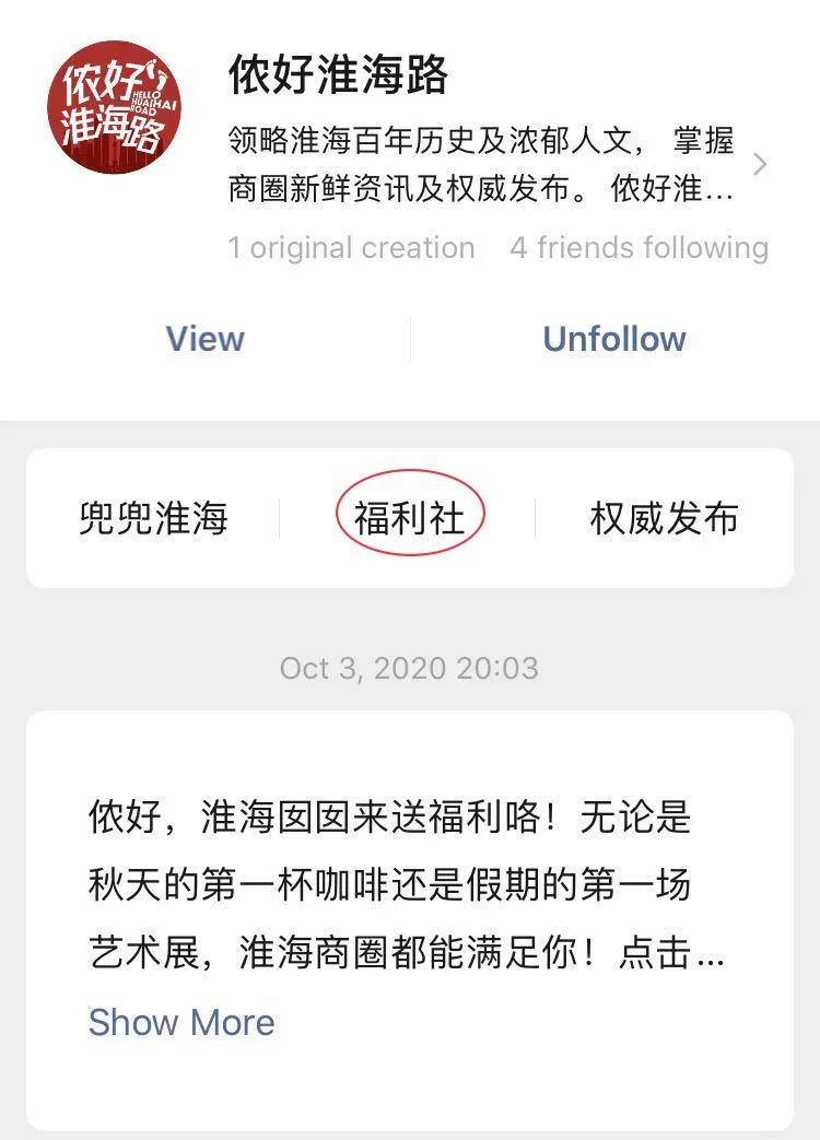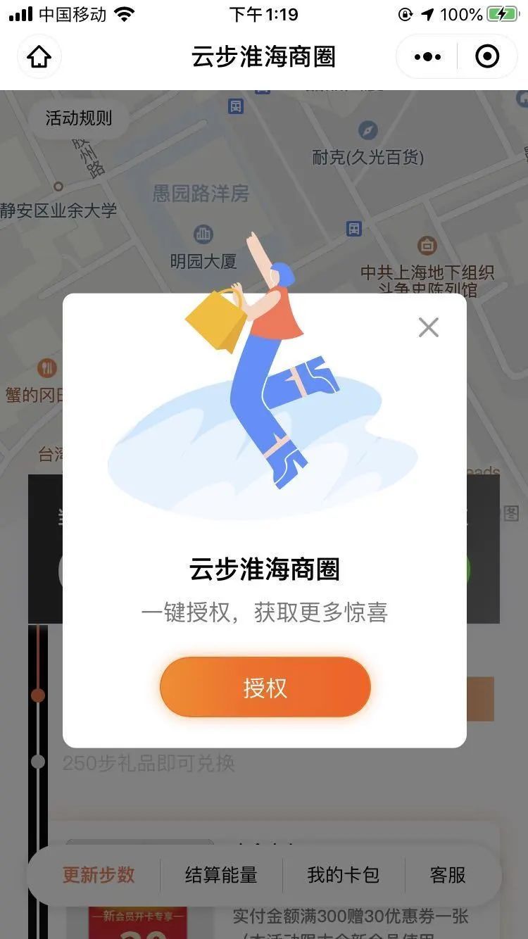 现在,走路还能收获福利!关注“侬好淮海路”,点开“福利社”,授权成功后就可以看到你在淮海路范围内所走的步数。转换成相应能量后,就可以兑换各种优惠券哦。