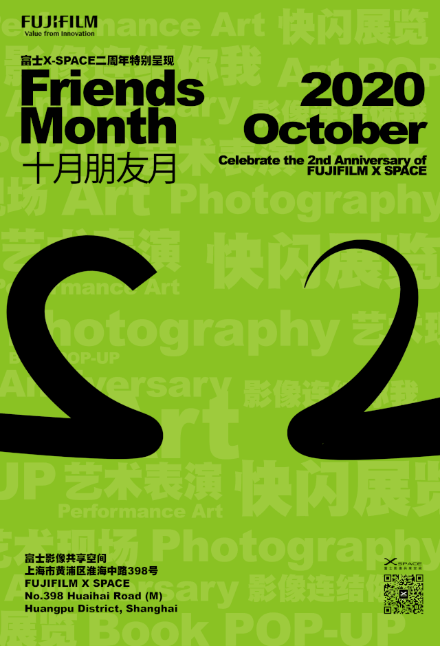 时逢富士X-SPACE2周年,从10/01—11/01,富士举行「十月朋友月」特别活动,集结国内外知名的出版社、艺术潮流前端平台及各领域组织,为大家带来多场Pop-Up快闪展览、艺术讲座、舞蹈及行为艺术表演。