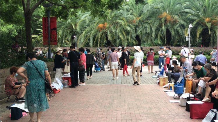 但阵势完全不好和相亲角比。夏末的下午,大约有三十多人。以中老年人为主,男性居多。