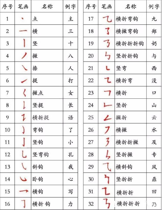 下面这张汉字笔画顺序表,供大家参考。