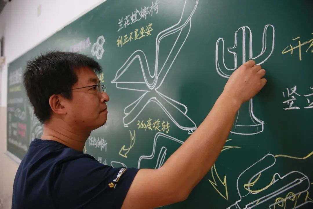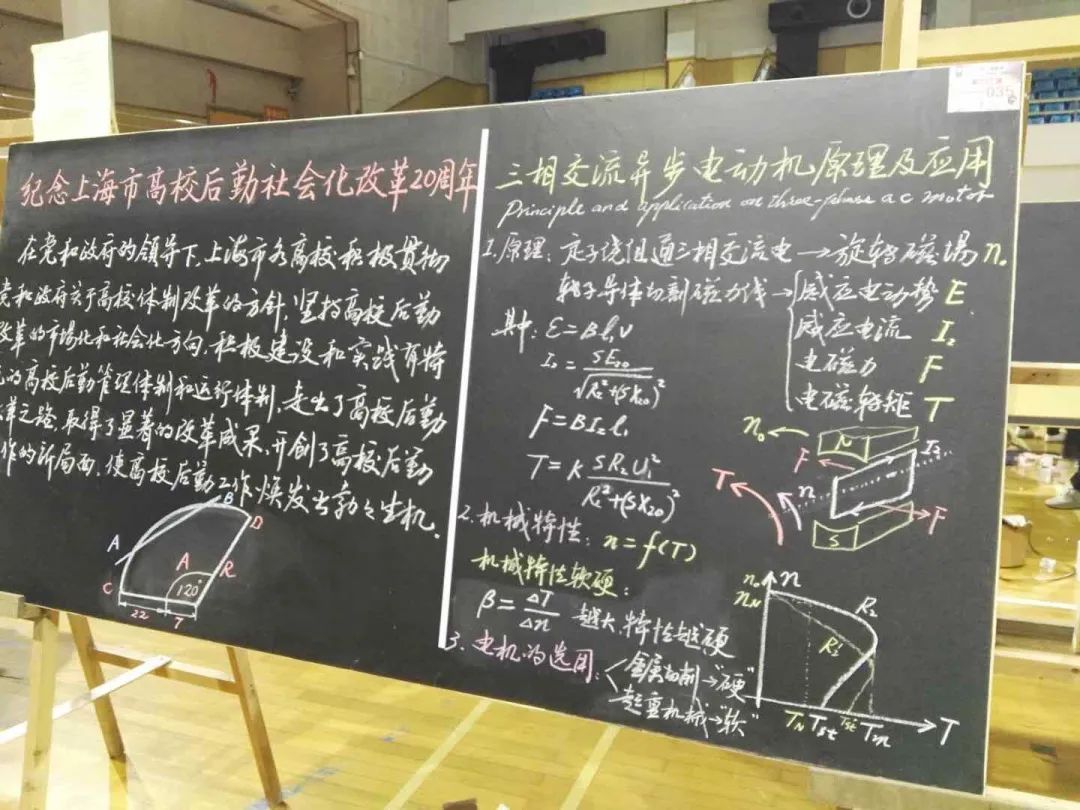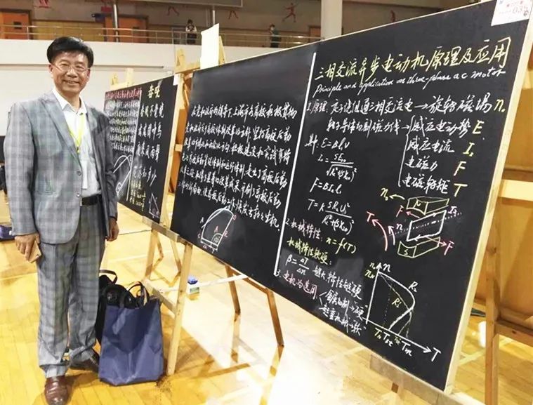 上海建桥学院机电学院蒋忠理老师曾在上海教师“三笔一画”大赛中年组板书中大赛中荣获三等奖。在不能使用圆规、直尺的规定下,他绘制了拿手的机械原理分析图,充分展示自己在板书方面的教学基本功。