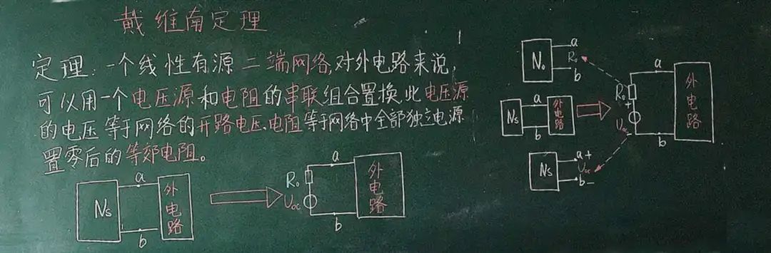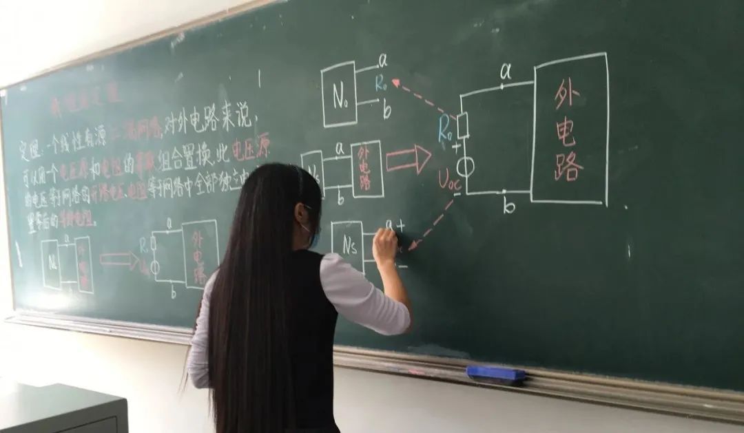 上海版专的栾世杰老师在讲授《电工电子技术》课程时坚持运用精美的板书,以突出知识点、绘图的方式引导学生了解戴维南定理的概念,掌握内容以及应用方式,学会分析电路,并能熟练的将戴维南定理运用到解决实际问题中。