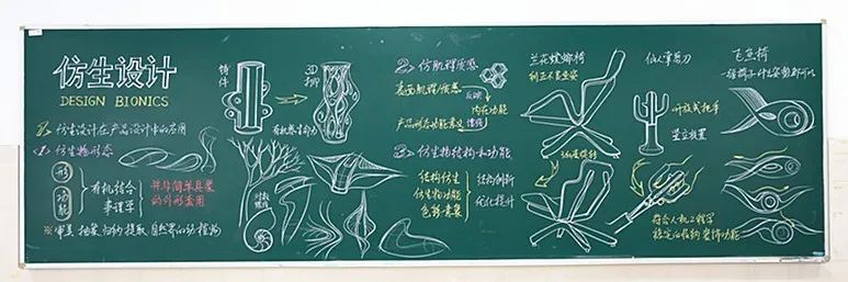 《仿生设计》是产品造型基础课程中的重要内容。上海工艺美院徐健老师充分发挥板书图文并茂的优势和形象直观的魅力向同学们展示《仿生设计》如何模仿生物形态构造和其功能原理,运用仿生设计的思维方法进行产品创新设计。