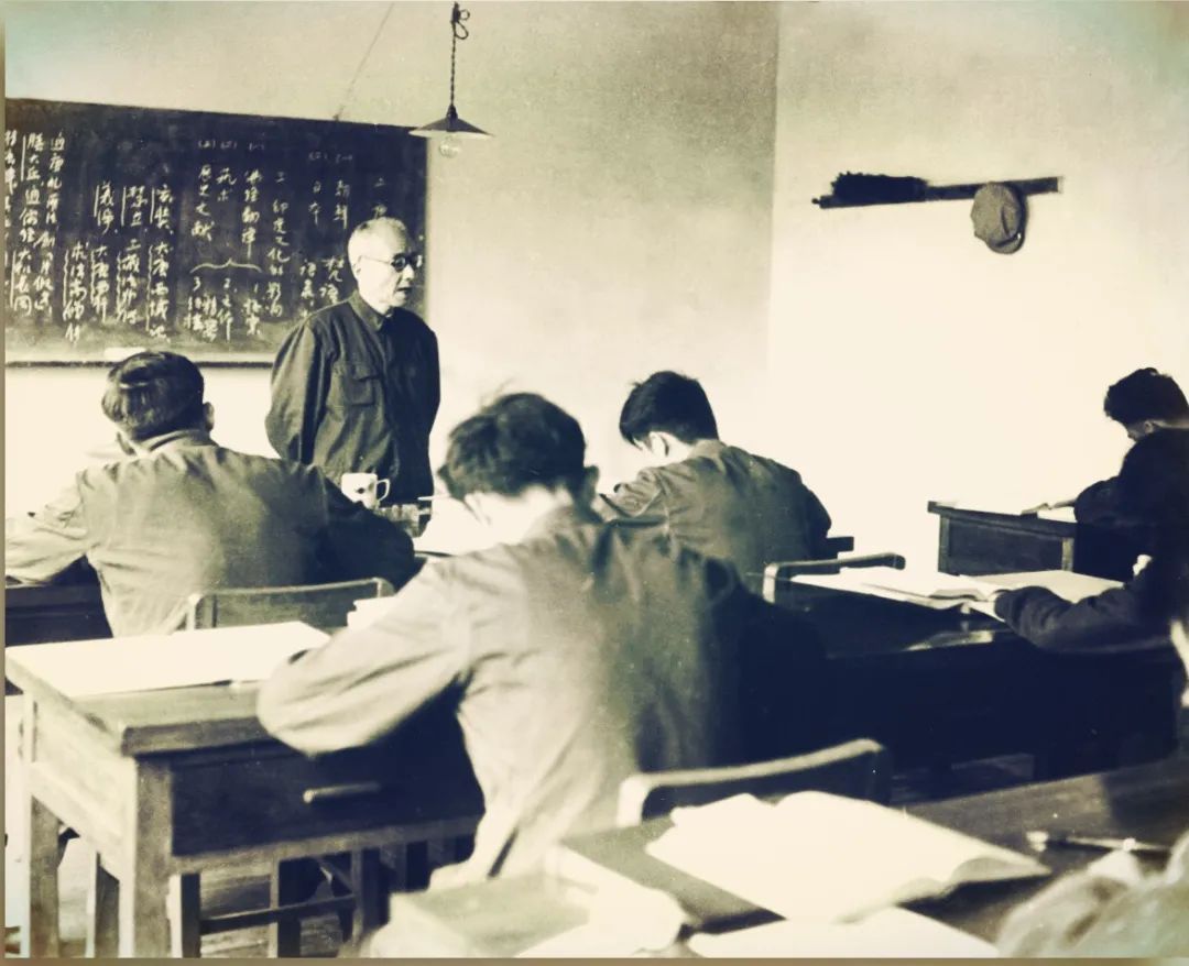 这是1956年的课堂。华东师范大学首任校长孟宪承先生为中国教育史研究生班开课,讲授教育原理、中国教育史。他习惯一走进教室先将帽子挂在墙上,怀表置于讲台,然后开始讲课。他的学生曾回忆道:“第一次研究生课,黑板上板书工整六个字‘古代历史材料’,没有一句客套话,讲课有条理,一句是一句,两张报告纸是全部提纲,发挥得淋漓尽致。”