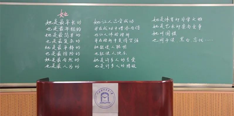 一点一横、一撇一捺,数字和运算符号构成的美图写满了黑板,成为了课堂知识结晶的见证。难点、重点分分钟清晰呈现,知识体系连贯而系统,让同学们都不舍把黑板擦去。相辅相成的是老师们深入浅出、脉络清晰的讲解,妙语连珠,通俗易懂,深受同学们的喜爱。三尺讲台,一方黑板,老师们对教育事业的坚守与执著,凝聚在这工整的板书中,传递着知识与爱。