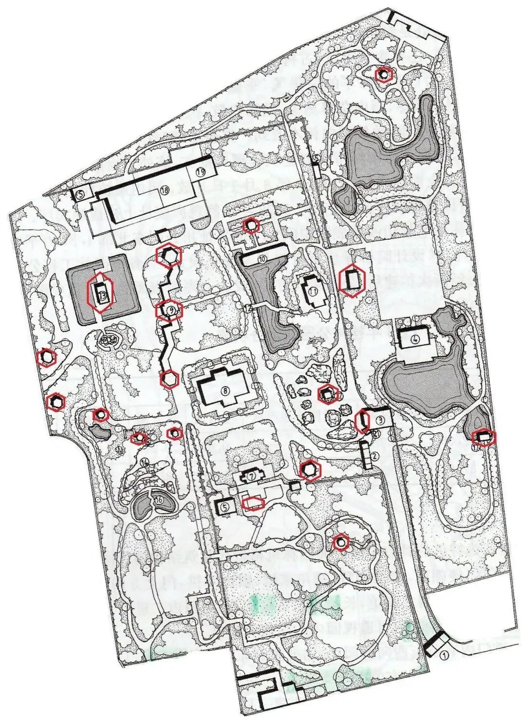 桂林公园的中式亭里面一半(8座)均是六角亭,这也是江南古典园林的常见用亭。