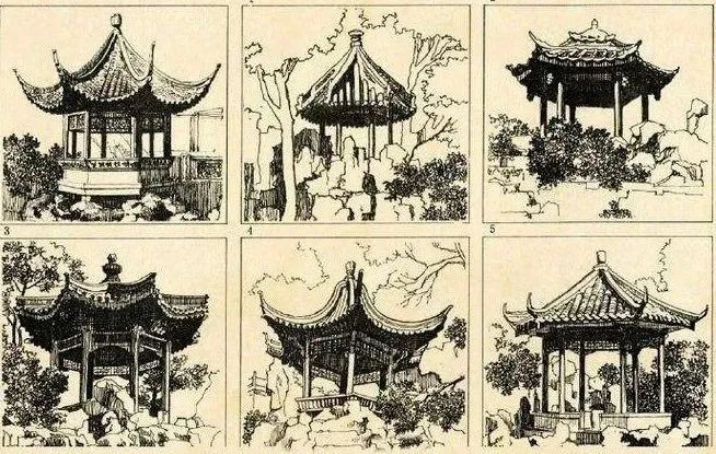 亭为休憩、凭眺之处,多设于池侧、路旁、山上或林中,是园林中的主要风景之一。其样式和大小,须因地制宜,与环境相融合。中式亭的平面,常见的有方形、长方形、四角形、六角形、八角形等,更有少数采用圆形、扇形等多种形状的。亭的立面有单檐与重檐之分,其屋面形式一般分为歇山顶与攒尖顶,给予中式亭在造型上的更多变化空间。