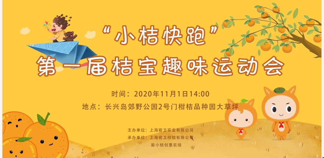 “小桔快跑”2020年第一届桔宝趣味运动会也将在柑桔节期间闪亮登场!桔宝漂流、桔宝迷宫大冒险、投“桔”问路、堆“桔”成塔、桔宝大跳远、桔宝问答、桔宝接物大作战......这些运动项目光是听着就让人跃跃欲试呀!做好准备,和孩子一起来玩吧,把奖品带回家!