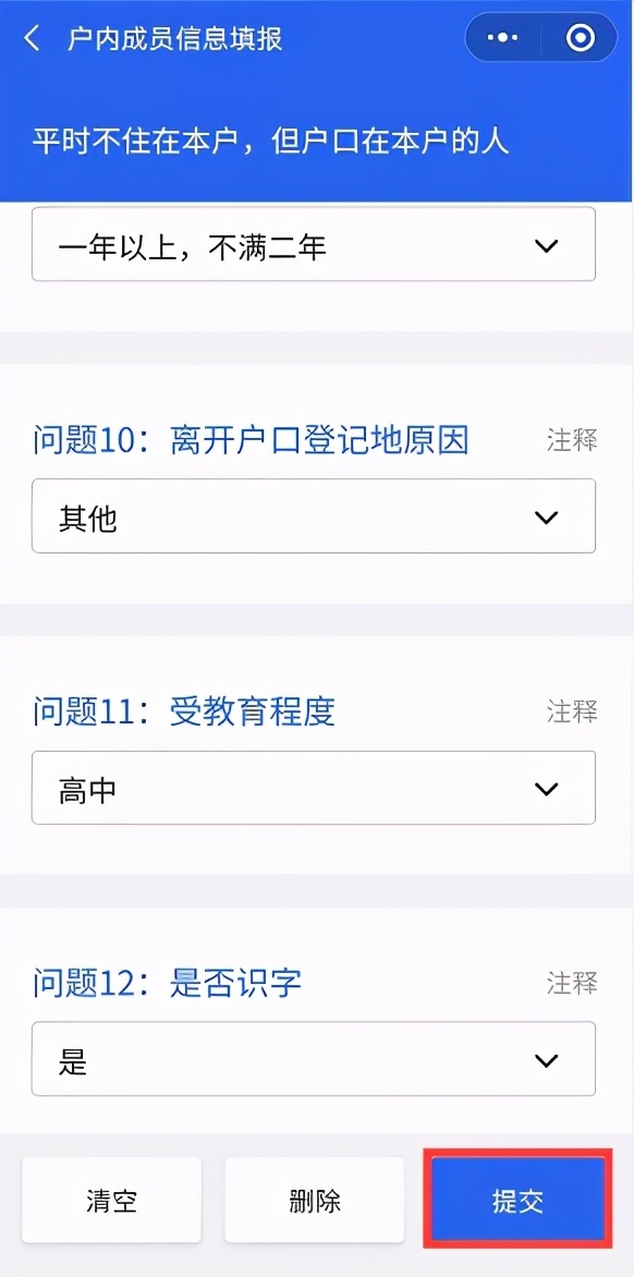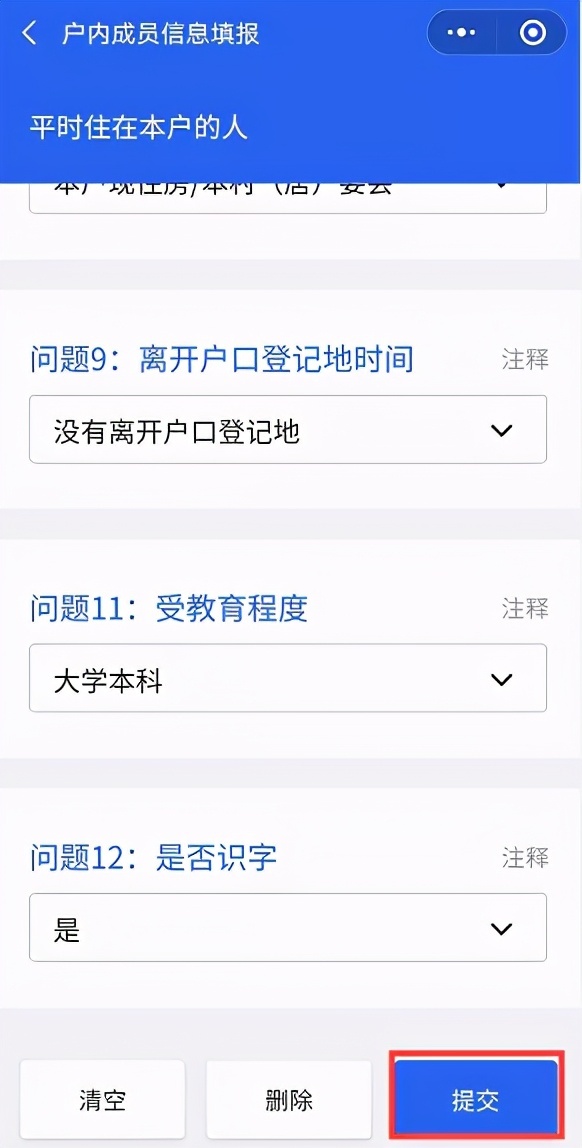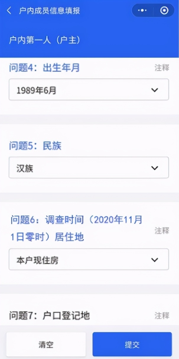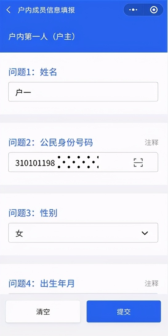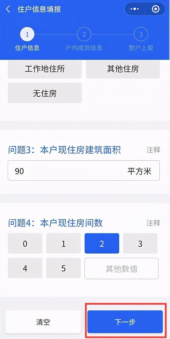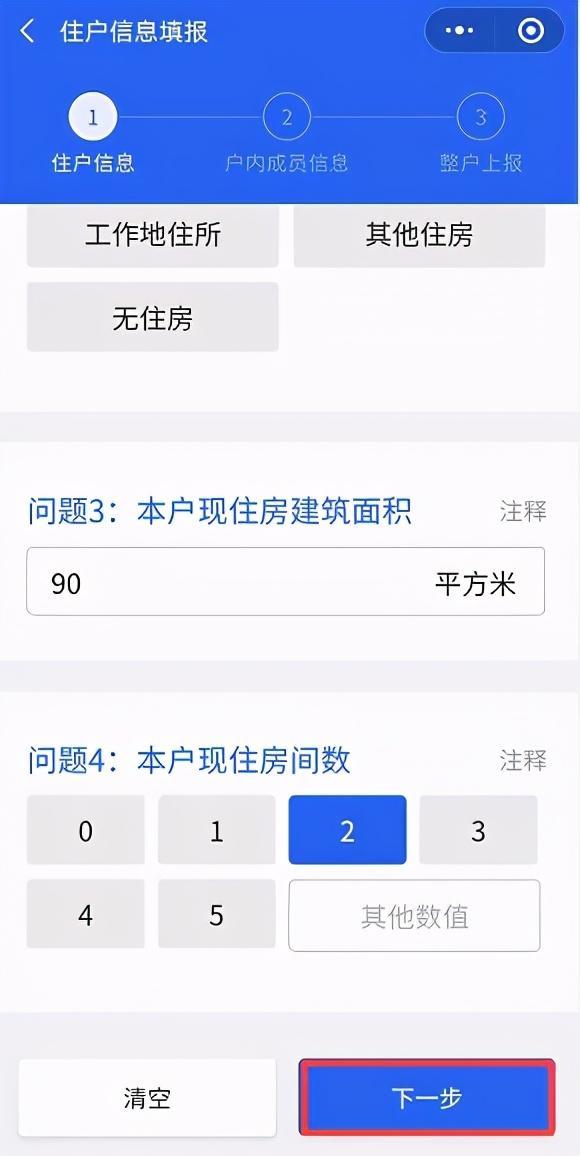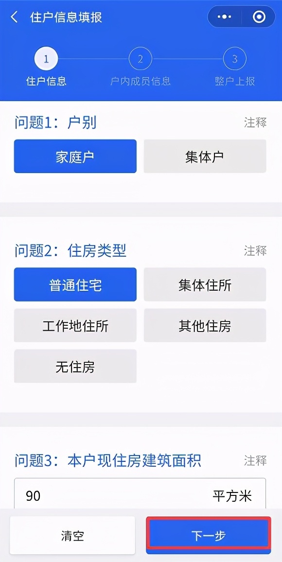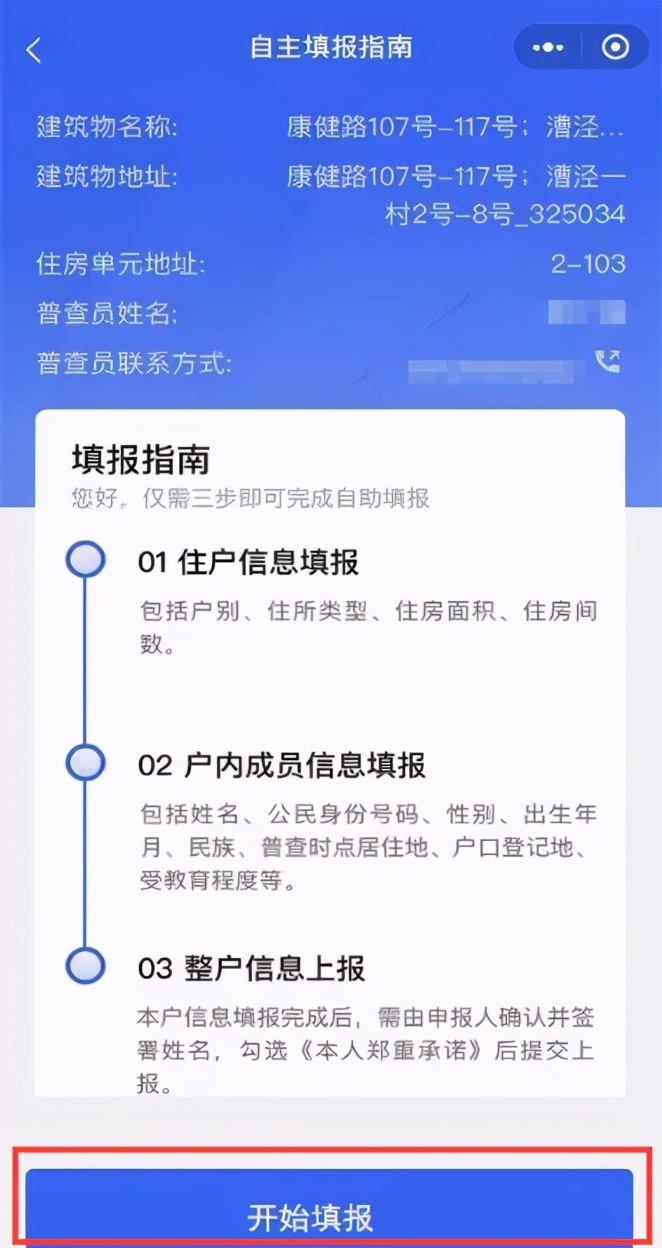 点击下图【开始填报】,进入“住户信息填报”界面后,依次录入,步骤见下图。