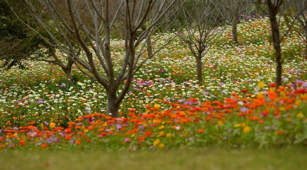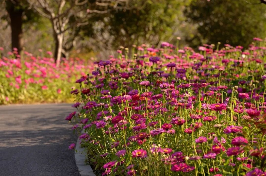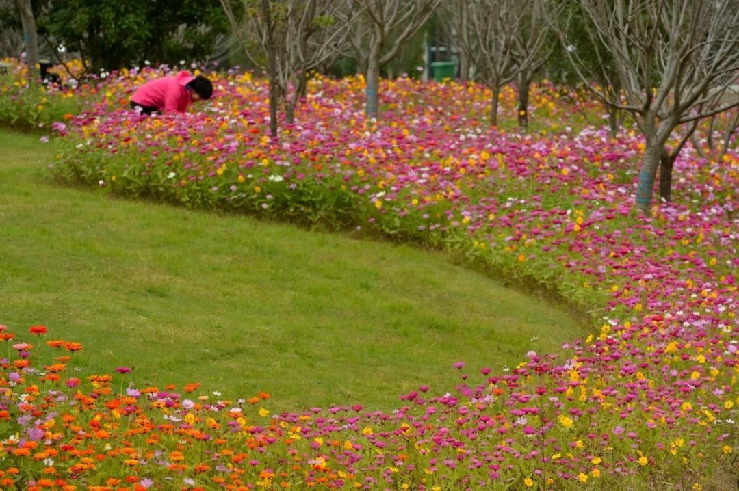 梅园区域盛放的多彩百日菊,是一路不可错过的绝佳取景地,红色、粉色、绿色、黄色、橙色......总有一款能俘获你的芳心。
