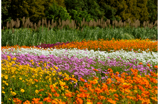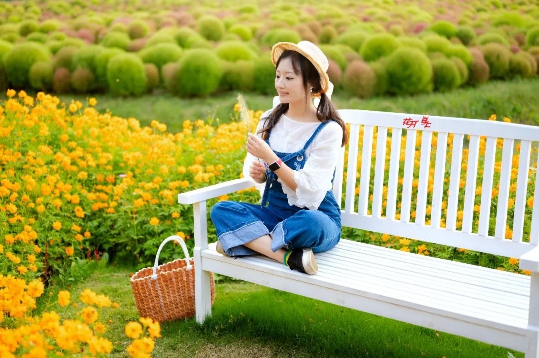 而除了地肤外,园内的格桑花也同样处于盛花期。颜色各异的花朵纷纷扬扬撒在路边,与众不同。目前地肤还处于青红交接的变色期,预计到十月底将全部变红。