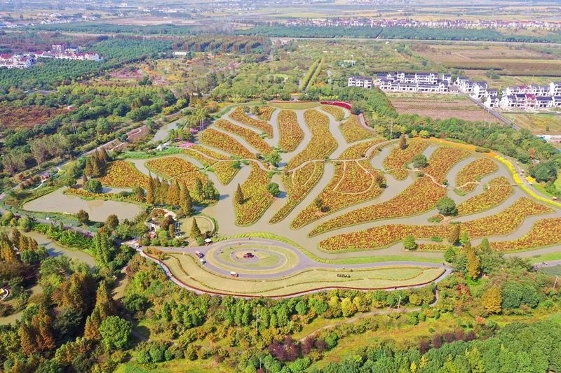 从园内花之舞区域的空中俯瞰,一个个圆球形状的地肤排列错落有致,蔚为壮观。它们有的小巧,有的飘逸,有的敦实。远远地看去,地肤就像是一个竖立的绿色的蛋,给人一种“萌萌”的感觉。地肤亮丽的色彩点亮了整个生态园,也吸引来了不少游客前来观赏。