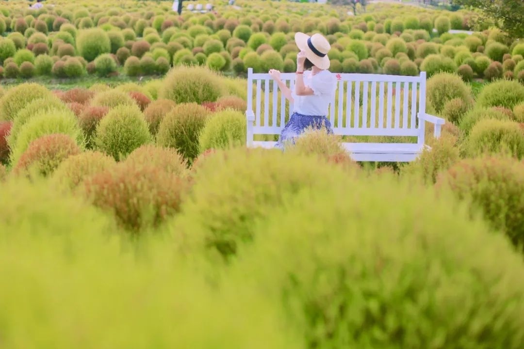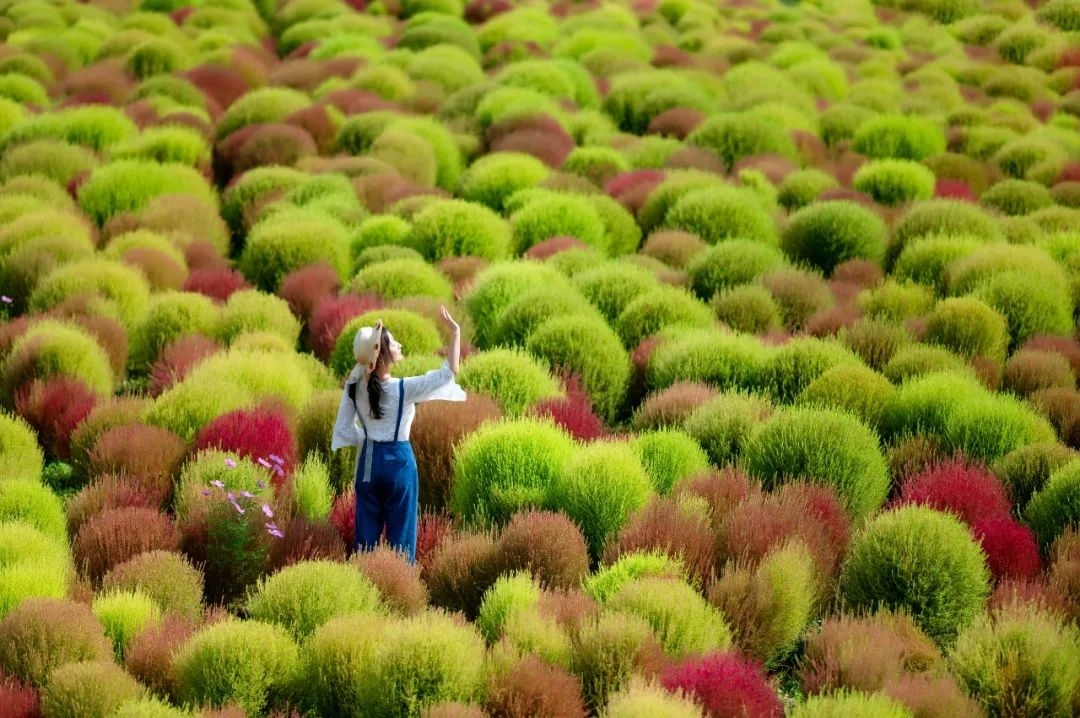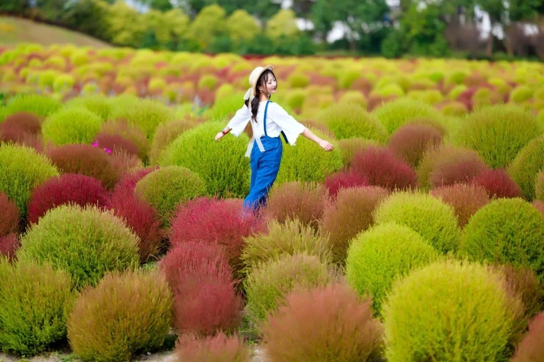 随着这几日昼夜温差不断加大,花开海上生态园内的地肤由绿转红,进入了最佳的观赏期。大大小小红绿相间的小毛球,成为了园内一道亮丽的风景线。