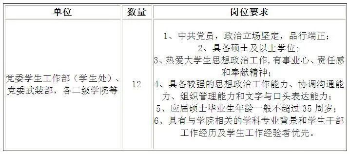 5.应聘辅导员及学生思政教师一般应具有硕士学位,并具备相关岗位要求;