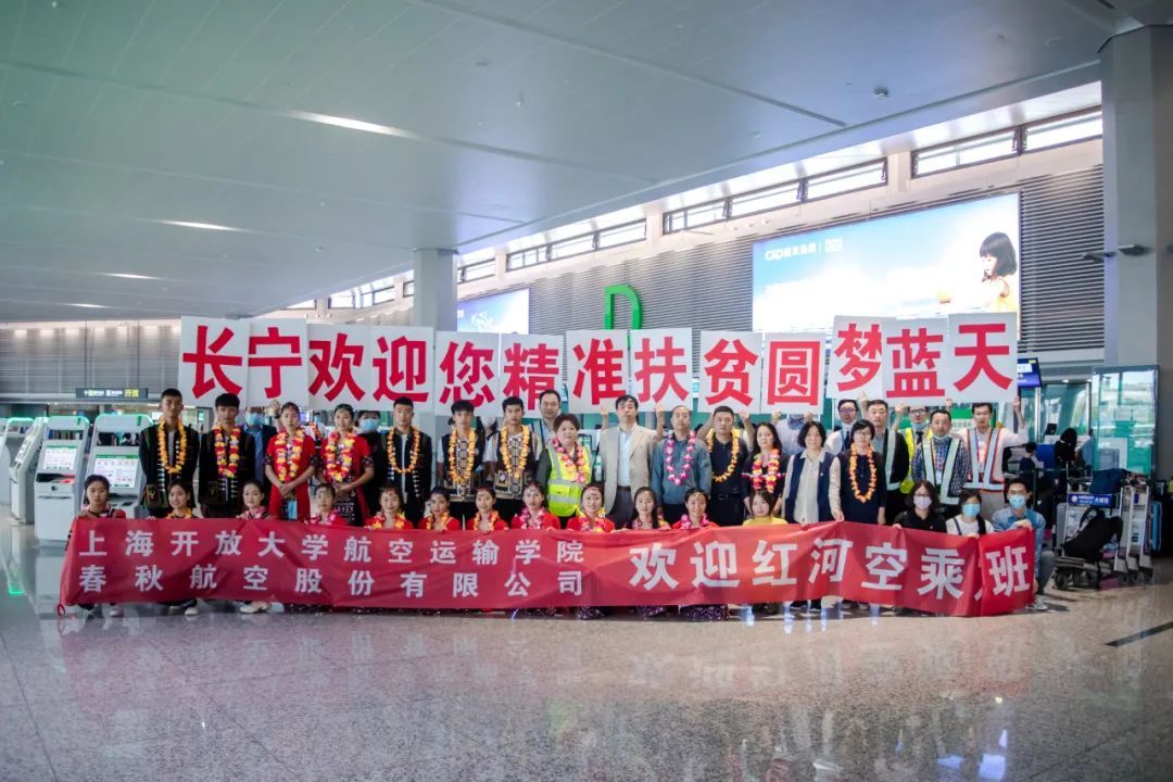 2020年4月,春秋航空扶贫工作组与上海开放大学航空运输学院组队前往红河州红河县、绿春县,实施面向建档立卡高中毕业生的“助梦蓝天计划”现场招生面试。这是新冠疫情之下,上海企业第一个奔赴对口帮扶地区实施“学历教育+职业培训”招生。5月16日蓝天筑梦计划学员开班,18名优秀的红河贫困学子将完成为期两年的学历教育和空乘职业培训,上海开放大学和春秋航空为他们全额减免学费,并提供免费食宿,一对一师生结对帮教。