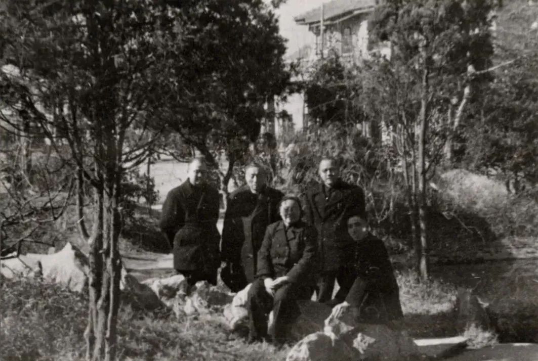 蔡慕晖与陈望道及内弟蔡希陶、蔡希岳、蔡希宁合影于复旦校园(摄于1960年代)