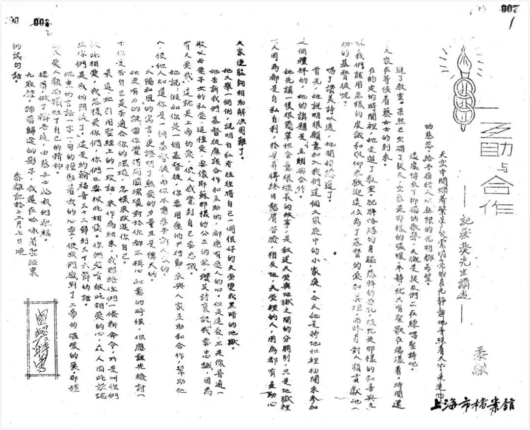 《互助与合作:记蔡葵先生讲话》,刊登于《复旦青年》1946年第2期(上海市档案馆藏)