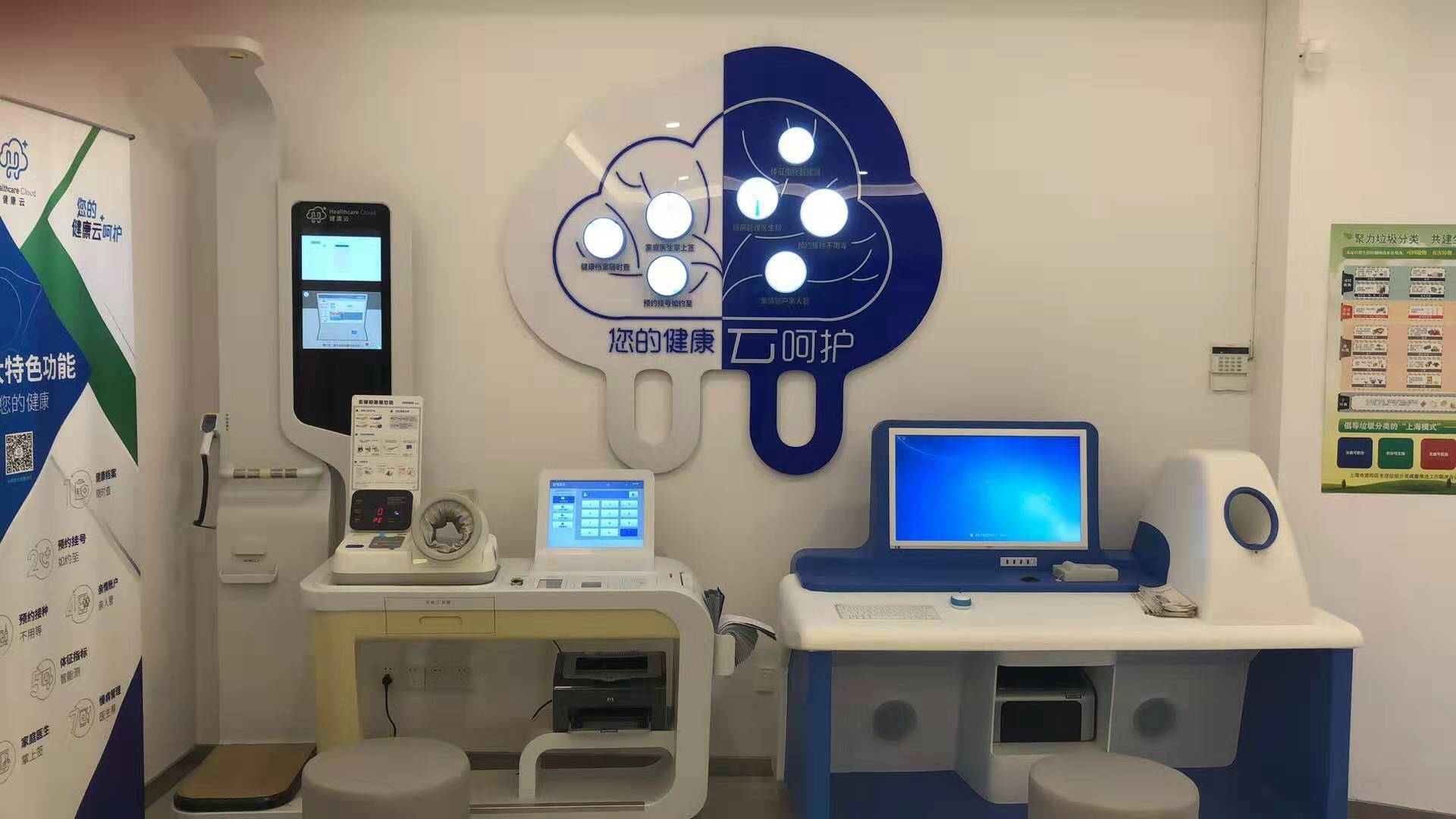 智慧健康驿站,又称智慧健康小屋,这里整合了健康自检设备、体质监测站等各方资源,居民可免费获得体脂、血压、血氧等11项自助健康检测,肺活量、握力、纵跳、反应时间等11项自助国民体质测试以及15项健康量表自评服务。