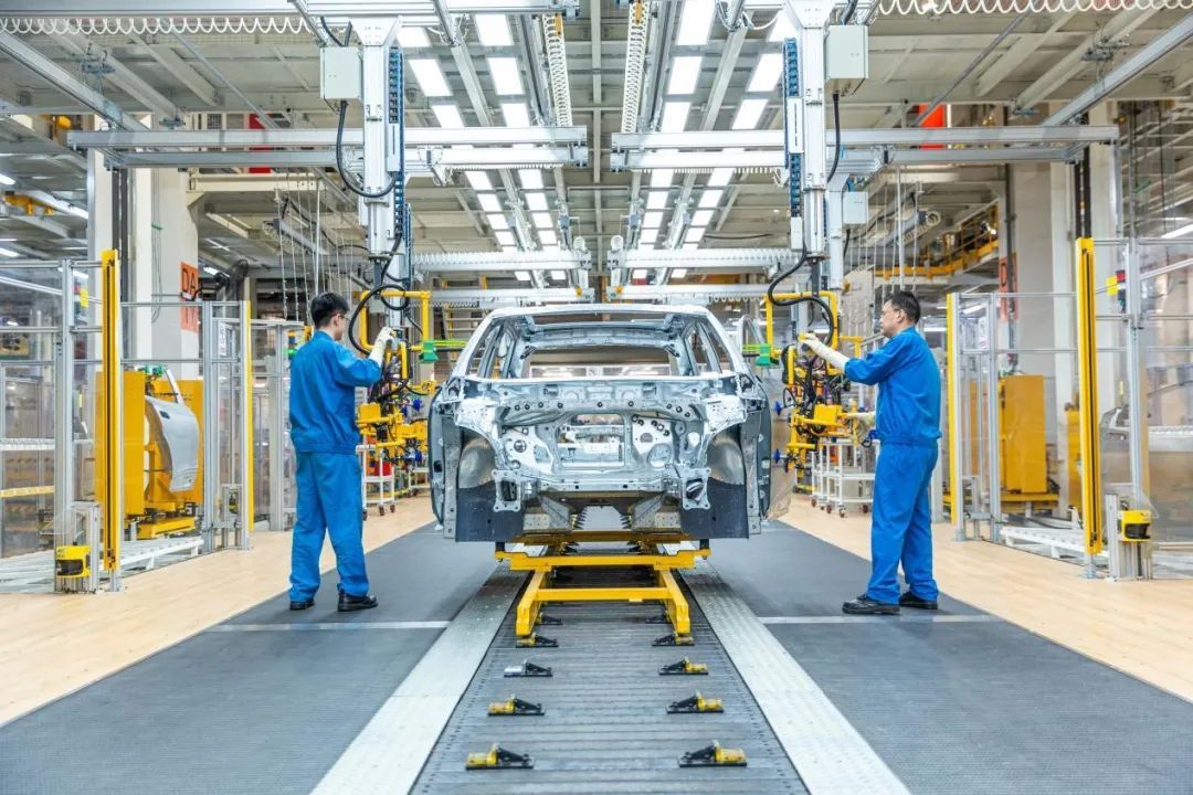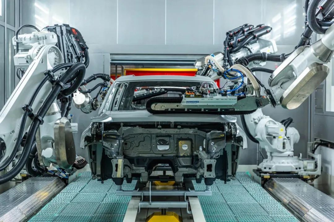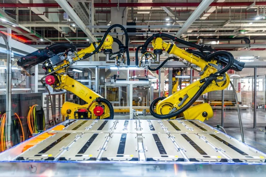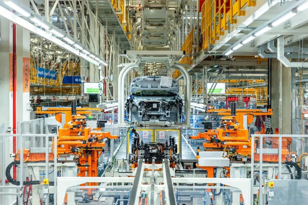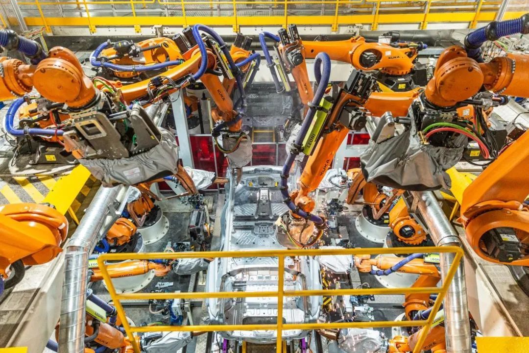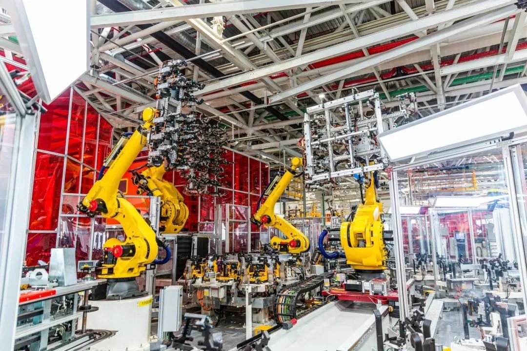 采用1400多台工业机器人,高度自动化。车身和电池车间基本实现无人化全自动生产。广泛应用高度自动化装配和自动测量技术,投入自动拧紧、自动门板喷蜡、全自动合装平台、全自动仪表安装、空中输送线、AGV小车等多项新技术,取代传统人工运输及安装,提升生产稳定性,保障产品高质量。