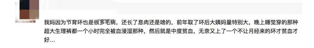 “我妈妈因为节育环也是很多毛病,超大生理裤一个都一个小时完全被血浸湿那种。”