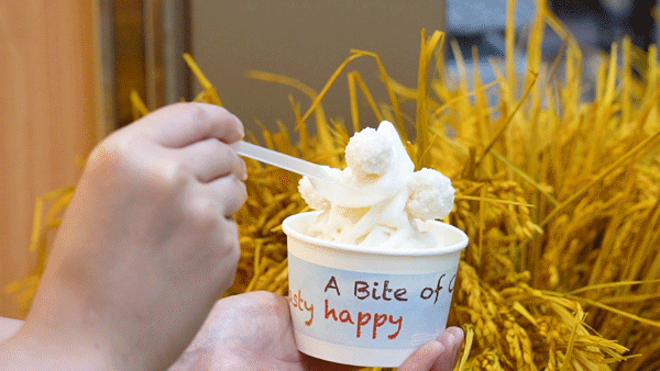 还有大米冰淇淋和玫瑰鲜米浆,都是用米汤调配出来的,醇厚不腻,搭配在一起就是一顿养生的大米下午茶。还有六宫格大米定食,有荤有素,还能吃到顶级的稻花香米饭。
